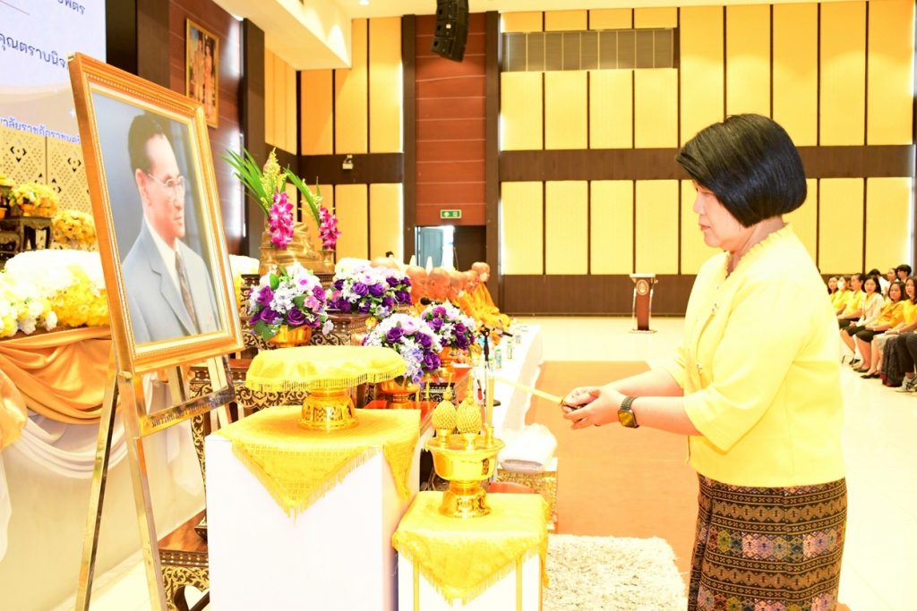 นางสาวประนอม เงินบุคคล ผู้อำนวยการสำนักงานอธิการบดี นางการดา รสทอง ผู้อำนวยการกองกลาง นางสาววรภัค จ้อยจินดา ผู้อำนวยการกองพัฒนานักศึกษา และนางสาวสิริณัฎฐ์ ควรประกอบกิจ ผู้ปฏิบัติหน้าที่ในตำแหน่งผู้อำนวยการกองนโยบายและแผน พร้อมด้วยบุคลากรในสังกัดสำนักงานอธิการบดี เข้าร่วมกิจกรรมน้อมรำลึกพระมหากรุณาธิคุณ เนื่องในวันนวมินทรมหาราช วันคล้ายวันสวรรคต พระบาทสมเด็จพระบรมชนกาธิเบศร มหาภูมิพลอดุลยเดช บรมนาถบพิตร ในภาคเช้า โดยมี รองศาสตราจารย์ ดร.ดวงพร ภู่ผะกา อธิการบดีมหาวิทยาลัยราชภัฏราชนครินทร์ เป็นประธานจุดธูปเทียนบูชาพระรัตนตรัย และธูปเทียนเครื่องทองน้อย เบื้องหน้าพระบรมฉายาลักษณ์ พระบาทสมเด็จพระบรมชนกาธิเบศร มหาภูมิพลอดุลยเดช บรมนาถบพิตร โดยมีคณะผู้บริหาร คณาจารย์ พร้อมด้วยบุคลากรและนักศึกษา เข้าร่วมในพิธี ณ ห้องราชนครินทร์ ชั้น 5 อาคารราชนครินทร์
