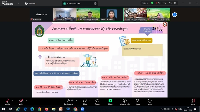 นางสาวนางสาวสิริณัฎฐ์ ควรประกอบกิจ ผู้ปฏิบัติหน้าที่ในตำแหน่งผู้อำนวยการกองนโยบายและแผน สำนักงานอธิการบดี และบุคลากรที่เกี่ยวข้อง เข้าร่วมการประชุมคณะกรรมการบริหารความเสี่ยงมหาวิทยาลัยราชภัฏราชนครินทร์ ครั้งที่ 4/2568 โดยยมี ท่านรองศาสตราจารย์ ดร.สิรี ชัยเสรี เป็นประธานผู้ทรงคุณวุฒิในการประชุม โดยมีกรรมการผู้ทรงคุณวุฒิจากภายนอก พร้อมด้วยคณะอนุกรรมการบริหารความเสี่ยงเข้าร่วมประชุมฯ (ประชุมออนไลน์)