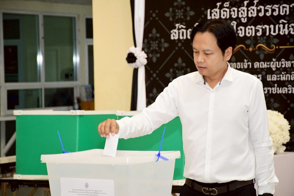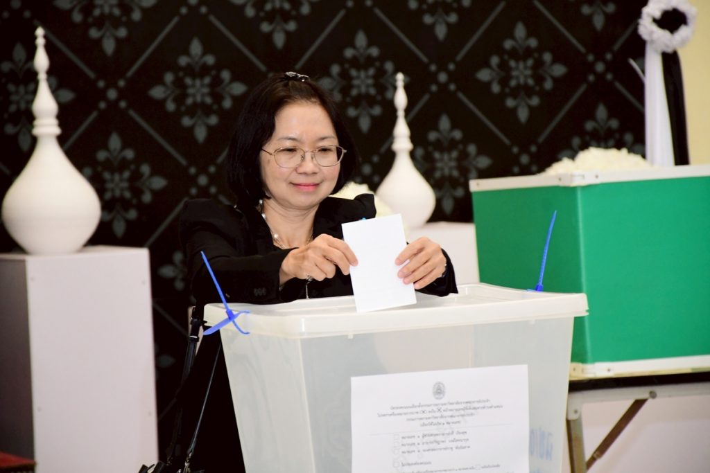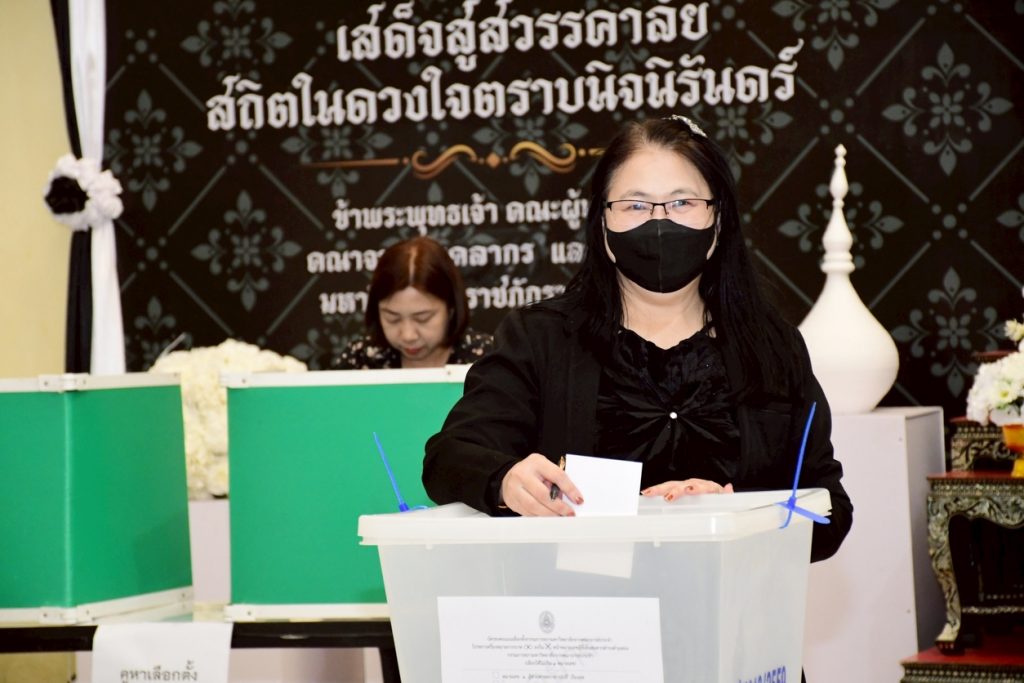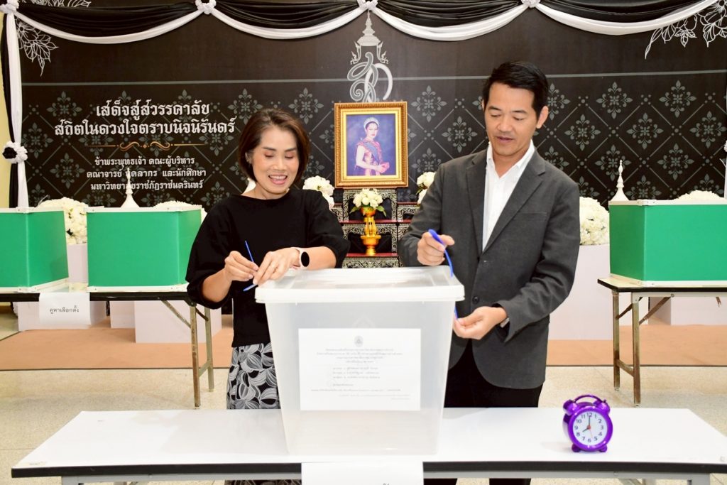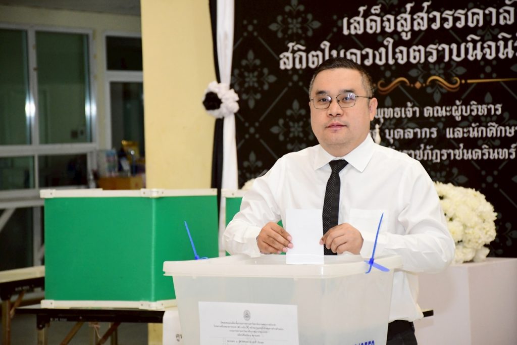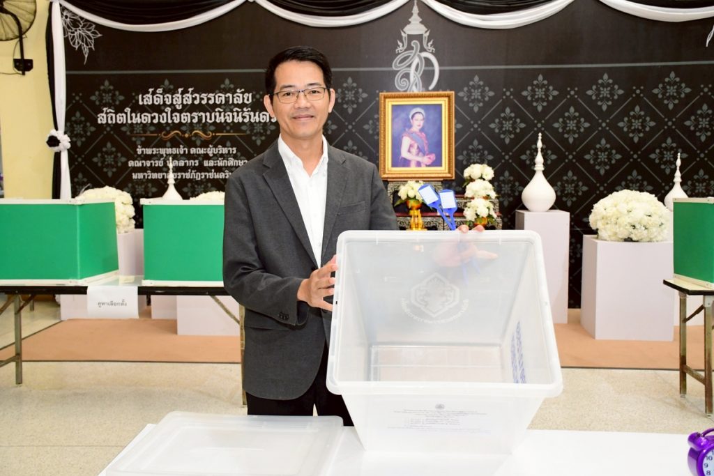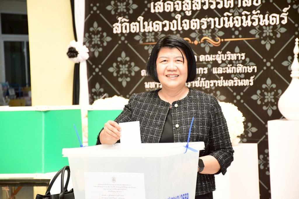 นางสาวประนอม เงินบุคคล ผู้อำนวยการสำนักงานอธิการบดี พร้อมด้วยบุคลากรที่เกี่ยวข้อง ร่วมการเปิดหีบบัตรเลือกตั้งกรรมการสภามหาวิทยาลัยจากคณาจารย์ประจำ โดยเปิดให้ใช้สิทธิ์เลือกตั้งได้ตั้งแต่เวลา 08.00 – 15.00 น. โดยมี ผู้ช่วยศาสตราจารย์ครรชิต มาระโภชน์ รองอธิการบดี เป็นประธานในการเปิดหีบบัตรเลือกตั้ง ณ ห้องโถง ชั้น 1 อาคารเรียนรวมและอำนวยการ มหาวิทยาลัยราชภัฏราชนครินทร์ อ.เมือง จ.ฉะเชิงเทรา และห้องโถง ชั้น 1 อาคารเรียนบูรณาการวิชาการ มหาวิทยาลัยราชภัฏราชนครินทร์ บางคล้า ต.หัวไทร อ.บางคล้า จ.ฉะเชิงเทรา