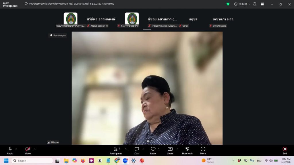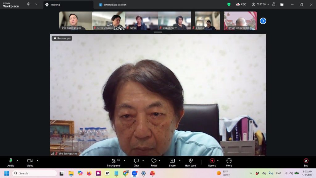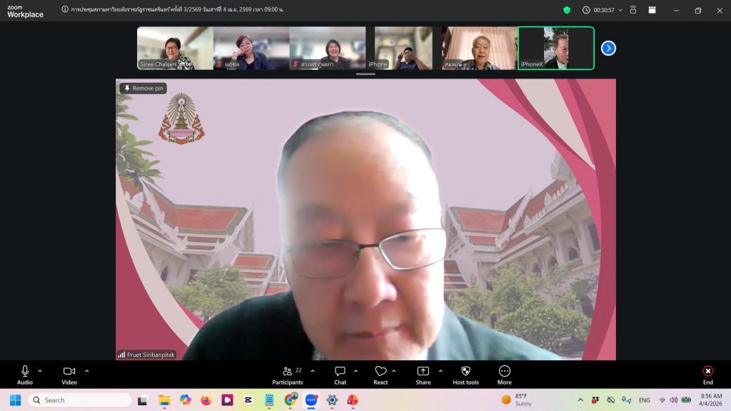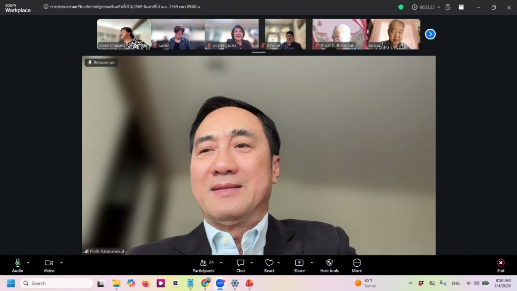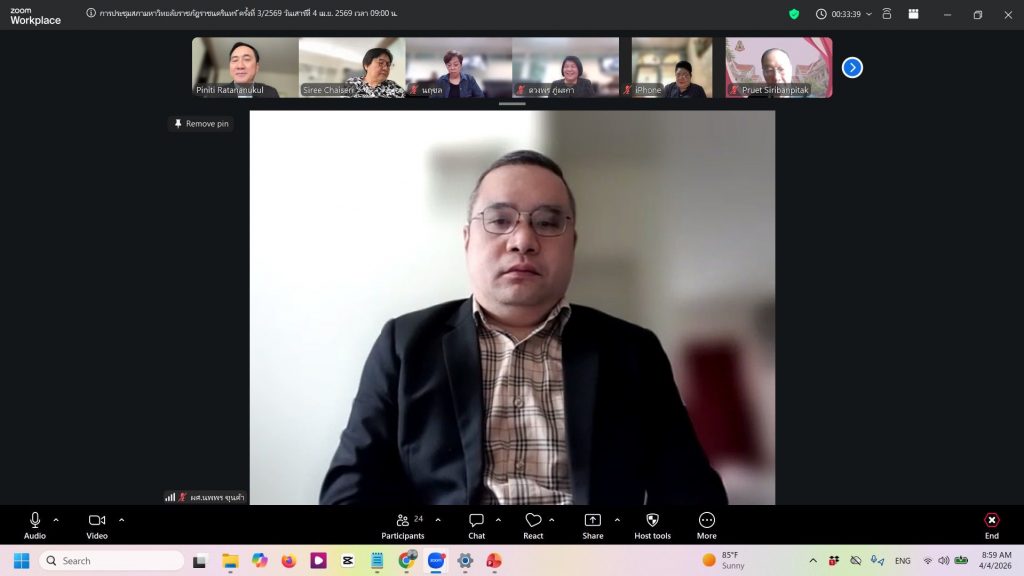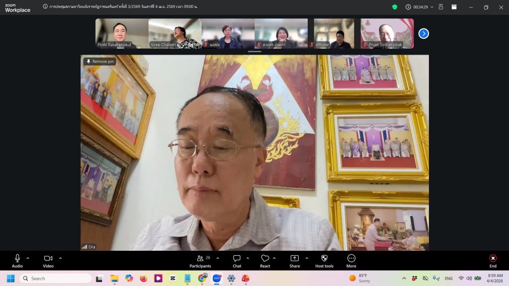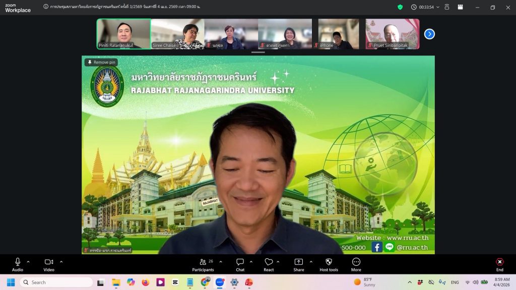 นางสาวประนอม เงินบุคคล ผู้อำนวยการสำนักงานอธิการบดี และบุคลากรที่เกี่ยวข้อง เข้าร่วมการประชุมสภามหาวิทยาลัยราชภัฏราชนครินทร์ ครั้งที่ 3/2569 โดยมี รองศาสตราจารย์ ดร.พินิติ รตะนานุกูล นายกสภามหาวิทยาลัยราชภัฏราชนครินทร์ เป็นประธานการประชุมผ่านระบบออนไลน์ โปรแกรม ZOOM Cloud Meetings และที่ห้องมหาชนก ชั้น 5 อาคารเรียนรวมและอำนวยการ